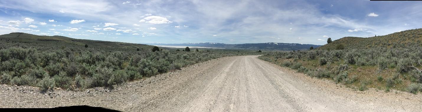 After a few hard and dusty miles we crest a hill and get our first view of the sprawling surprise valley with the snow-capped South Warner Mountains in the background.